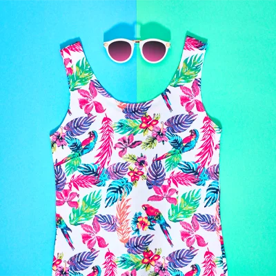 Blue Floral Print Patchwork Bow Knot Detail Sleeveless Swim Dress