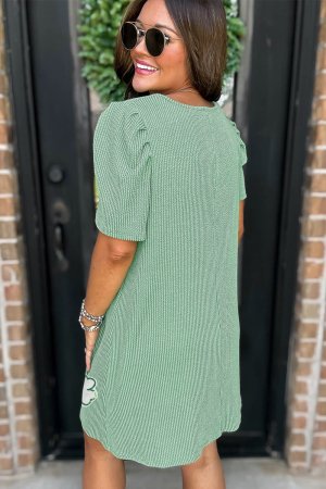 Mint Green Sequin Clover Graphic Puff Sleeve Corded T Shirt Dress